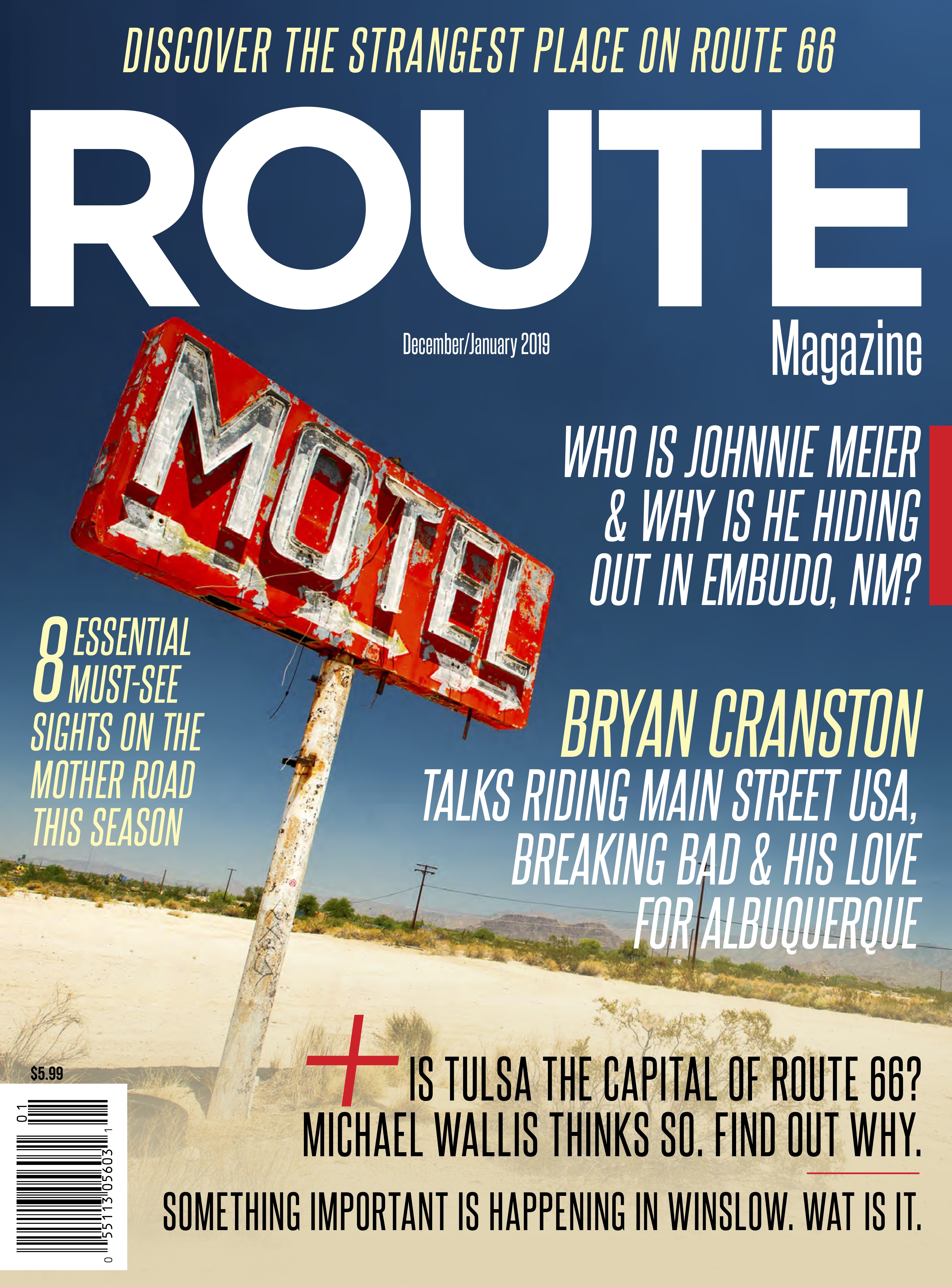 ROUTE Magazine is a well-respected bi-monthly magazine that focuses on road travel, vintage Americana and Route 66. The title is found in B&N stores nationwide, in over 1200+ rooms in leading hotels across the eight Route 66 states, in dozens of smaller bookshops, museums, gift shops and lobbies countrywide, and via our popular digital version, which is read by an engaged, excited international audience of up to 100,000.