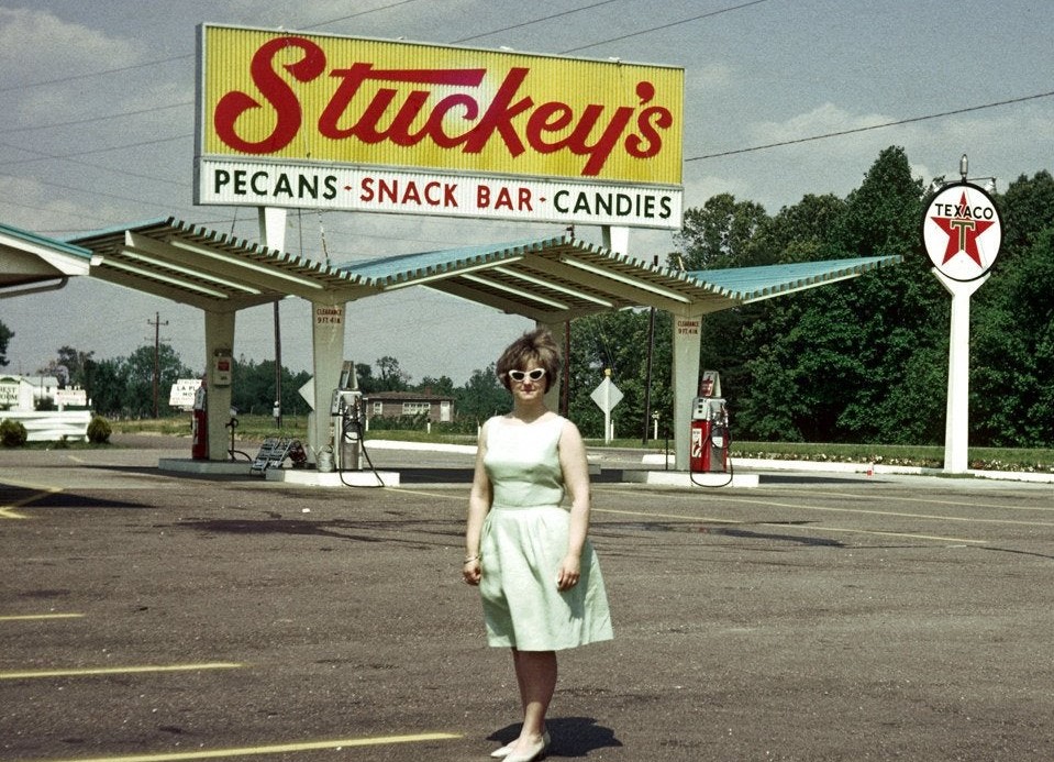 But the thing is, it’s also a significant reminder of the amazing success that Sylvester Stuckey built during the Mid-Century from such modest beginnings. Just think of all those family station wagons up and down America’s highways that pulled up to an iconic Stuckey’s roadside location, to get gas, select souvenirs and sweets, and maybe have breakfast or a sandwich. The familiar teal roof and the Texaco flag flying out front signaled the first and the best in terms of travel services. But now, in many locations across the US, the modern tourist can once again stop at a travel store and find Stuckey’s products. An iconic Pecan Log Roll, just like Ethel used to make. Maybe a rubber alligator or the Red Drinking Bird for Aunt Betty. Certainly, a bag of Georgia pecans for snacking during the next leg of the trip. And, just like the Stuckey’s mail-order catalog of yesteryear, fans can now order goodies online. You can still get your own piece of America’s national treasure — Stuckey’s. It’s there waiting for you, where the romance of the road and the needs of everyday life collide in the classic American road trip.