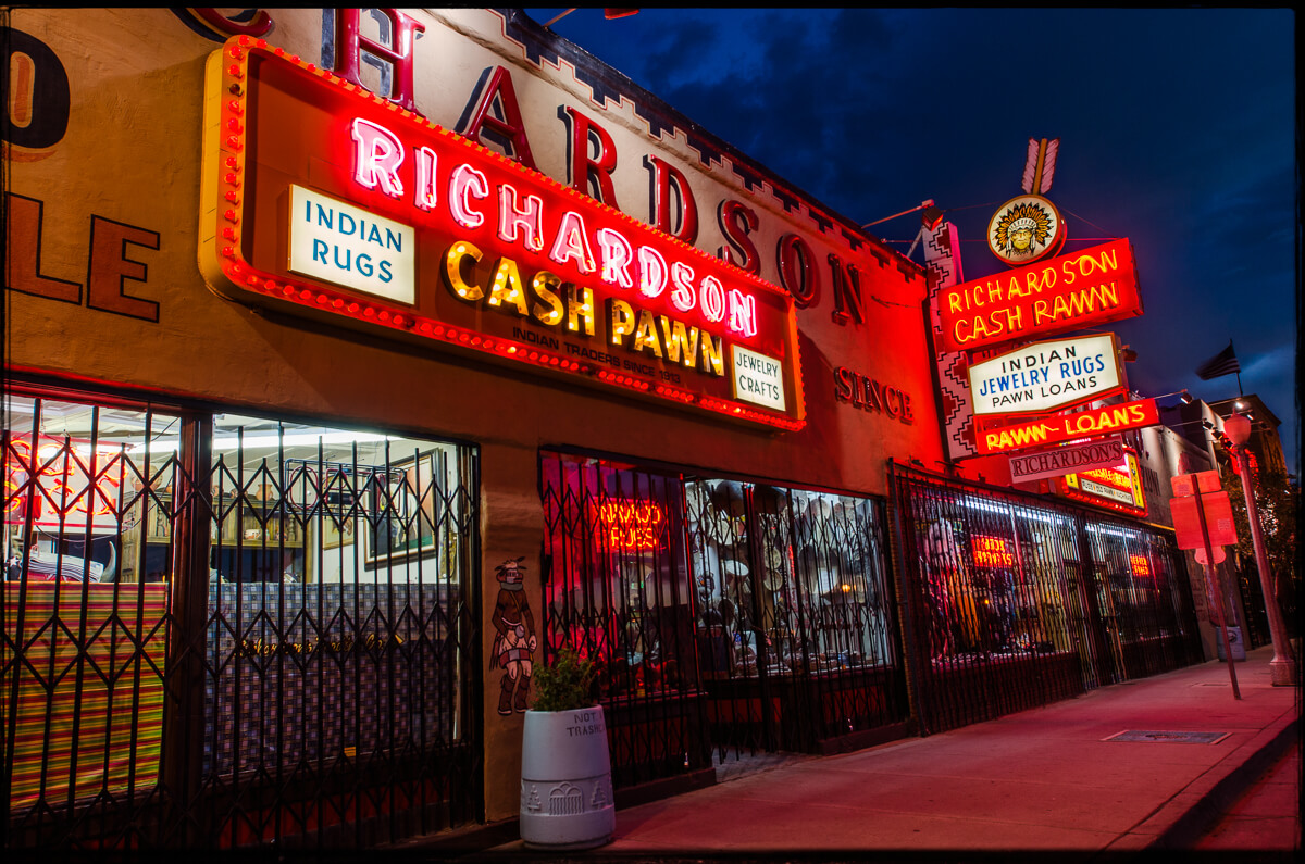 Feeling I had what I needed, there was just a little time left of civil twilight so I jumped back into the car and headed to Richardson’s Trading Post, just in time to capture the last bits of afterglow to create this image on the empty Gallup streets.